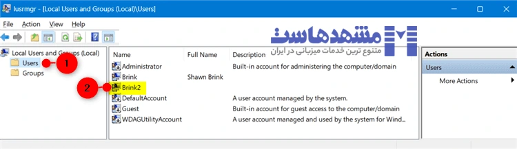 1.بخش Local Users and Groups را باز کنید و یا عبارت “lusrmgr.msc” را در ویندوز جستجو کنید.